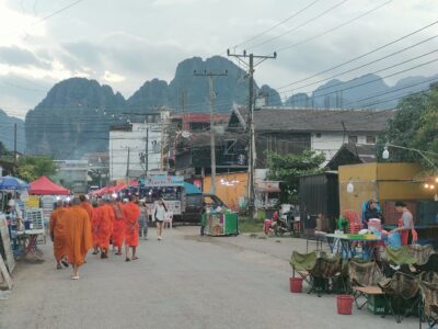 ラオス・バンビエンにあるウォーキングストリートナイトマーケットについて紹介します。 お土産探しに最適な場所です。
