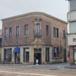 外観はアールデコ調の意匠が特徴で、角部分の装飾的な壁面がアクセントになっています。