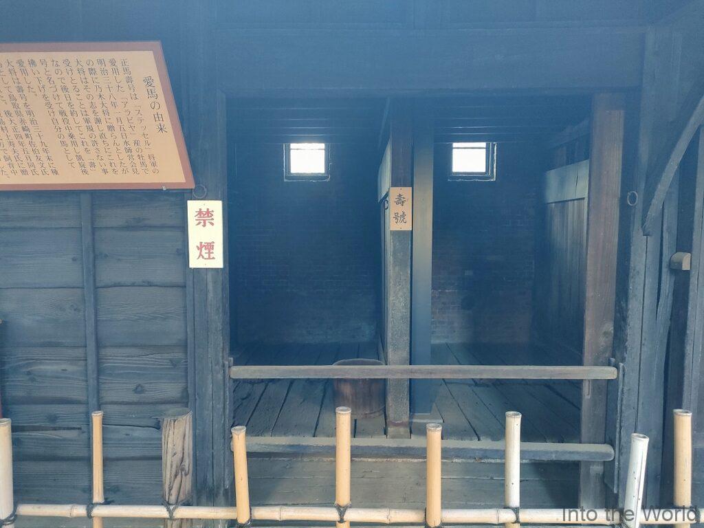 右手にはレンガ造りの馬小屋があります。建設は1889年(明治22年)で、邸宅よりも古い建物です。