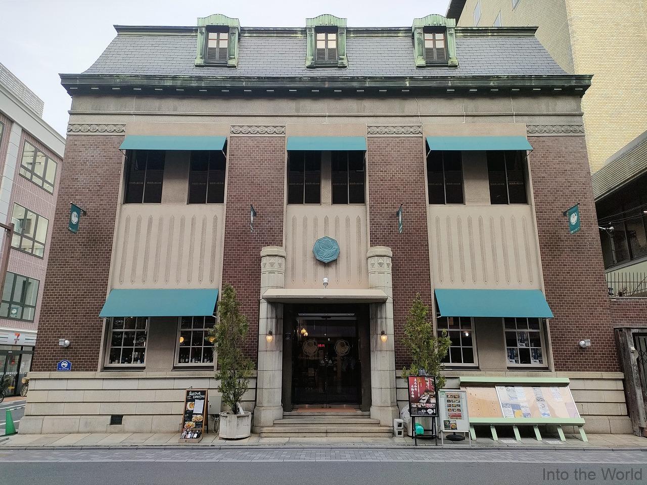 外観には茶色のタイルやドーマー窓が特徴的なマンサード式屋根が用いられており、当時の大正モダン建築の特徴をよく残しています。