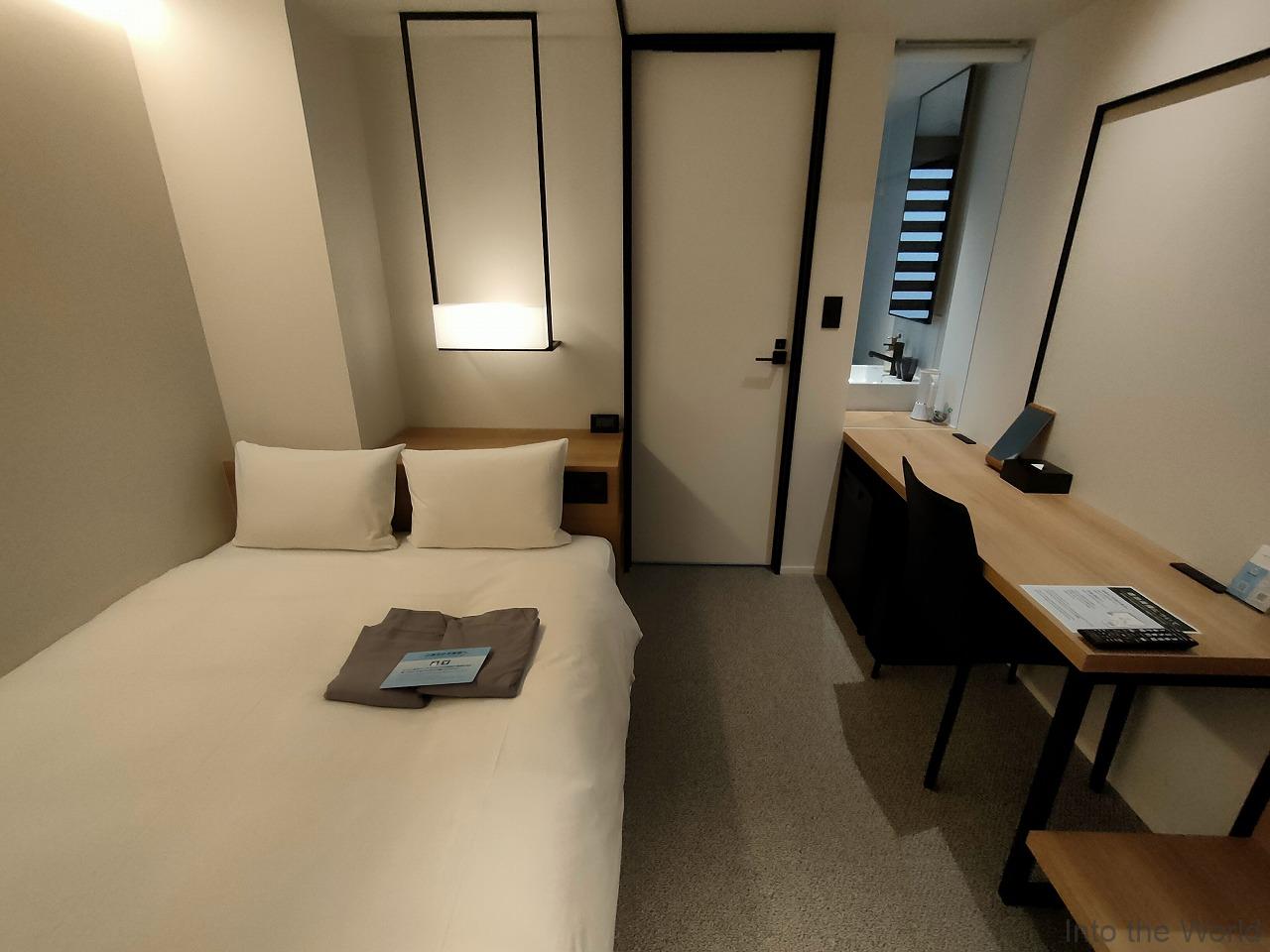部屋に入ると、いきなり足元にベッドがある間取りは少し気になりましたが、それでも15㎡という平均的なビジネスホテルのサイズです。