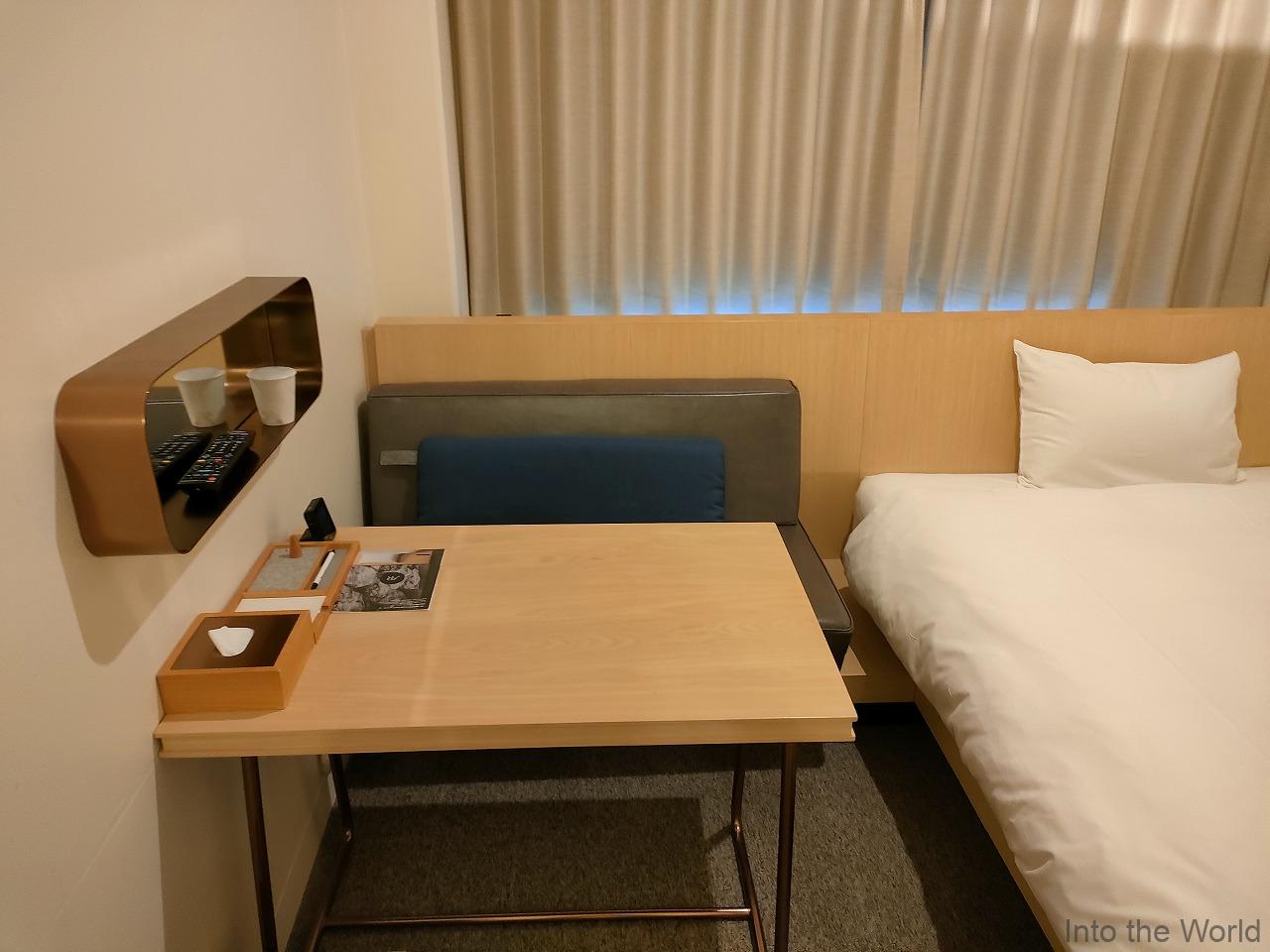 部屋の広さは15㎡です。このホテルはもともと学生寮だったため、部屋の作りが少し変わっているところもありますが、センスよく改装されています。