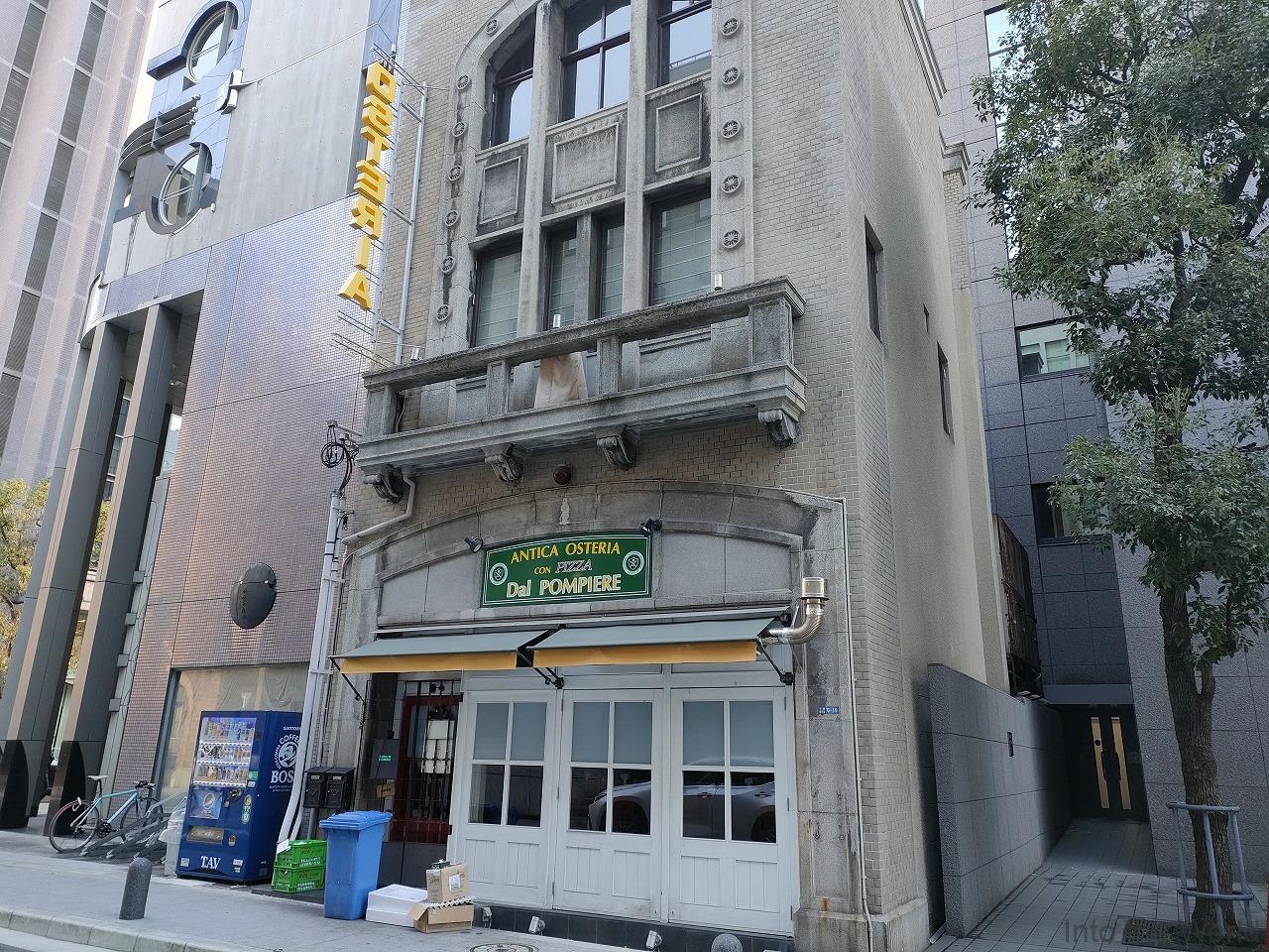 1925年竣工の旧大阪市中央消防署今橋出張所で、現在はアンティカ・オステリア・ダル・ポンピエーレというイタリアンレストランが入居する建物です。