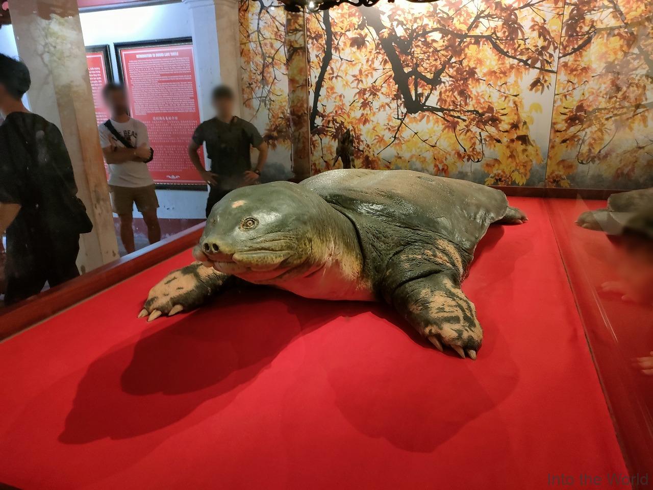 また、館内にはホアンキエム湖の還剣伝説に由来する全長約2mの大亀の剥製が展示されています。