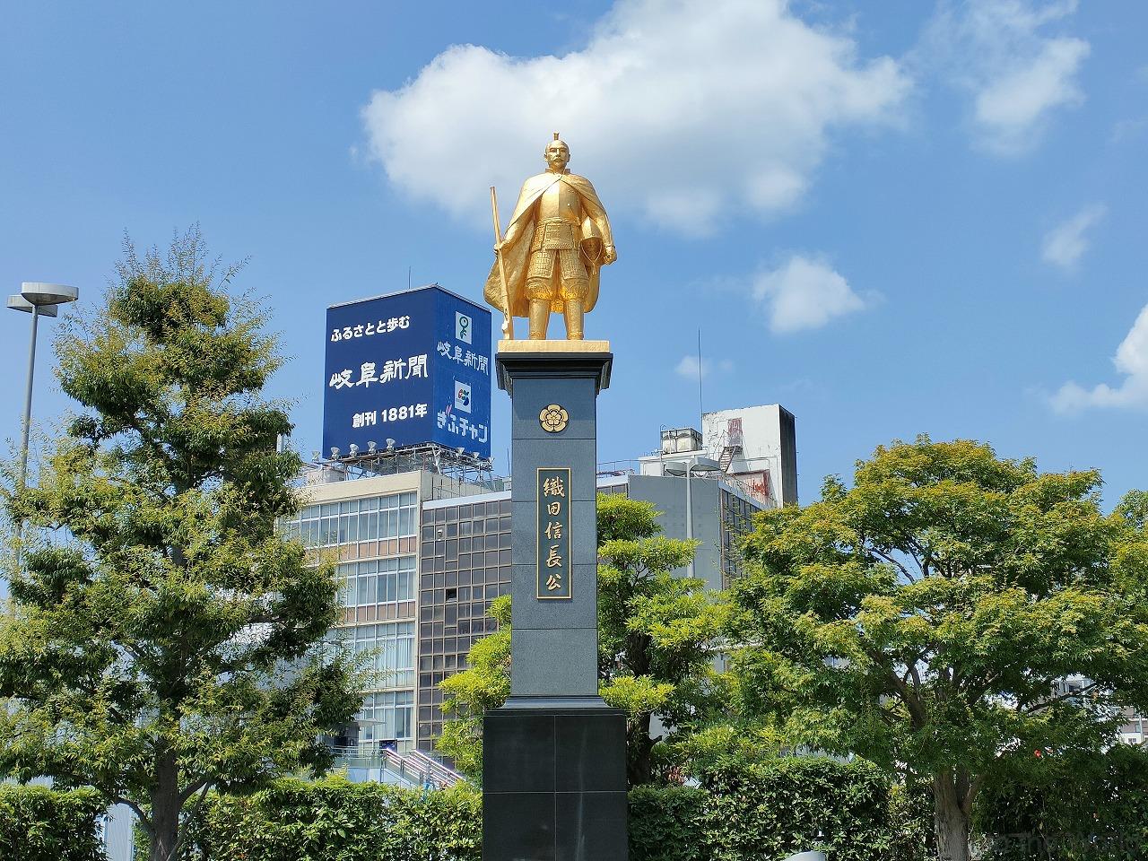 JR岐阜駅前にある黄金の織田信長像は、岐阜市制120周年を記念して2009年に設置されました。