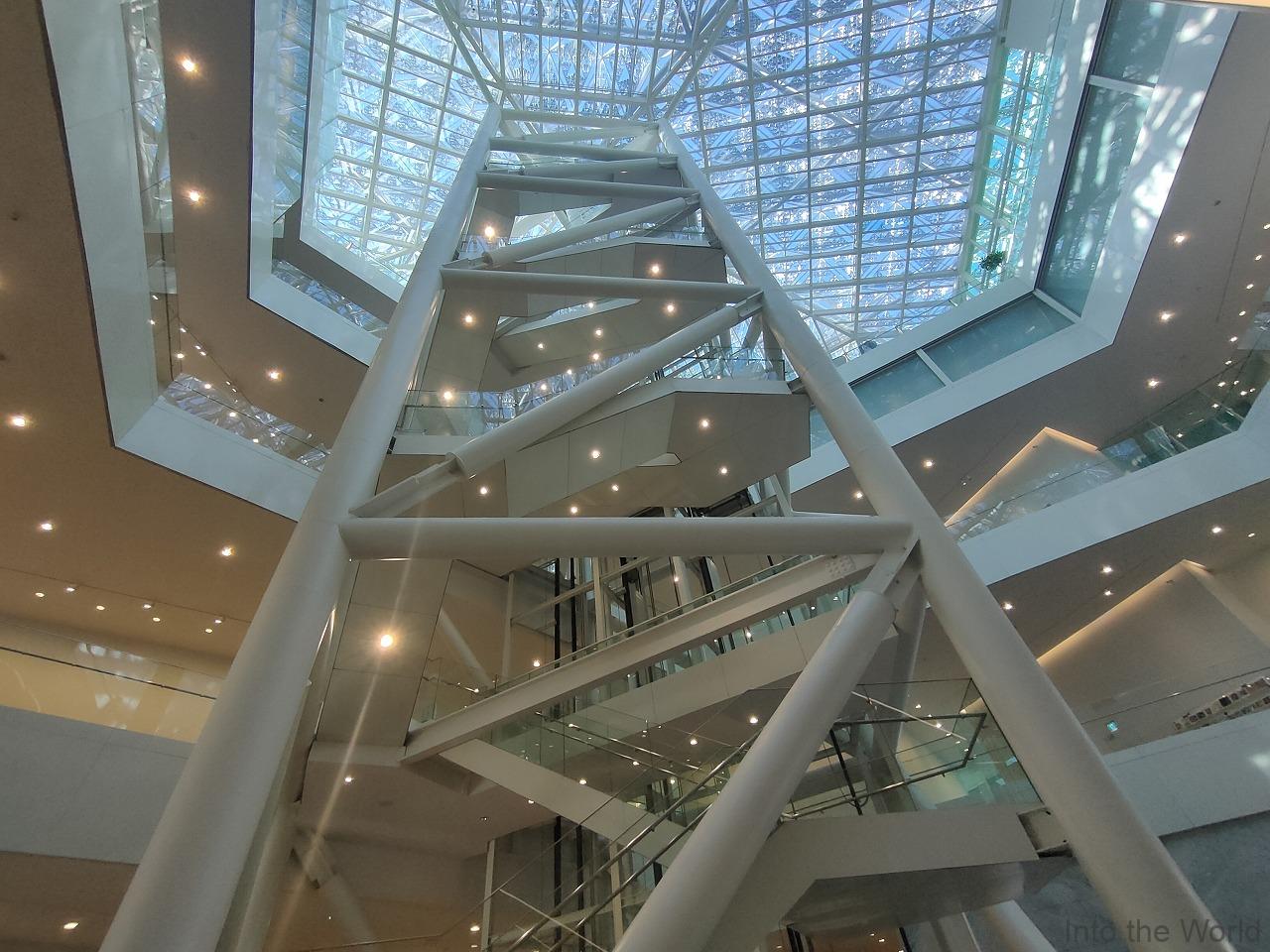 白を基調とした館内は回遊性が高く、展示室を巡る途中の吹き抜けや通路の移動そのものも、鑑賞体験の一部となるよう設計されているようです。