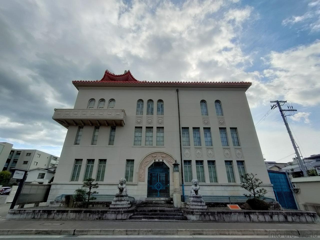 本館は鉄筋コンクリート造りの三階建てで、屋上には中国から移築された八角堂を配しています。